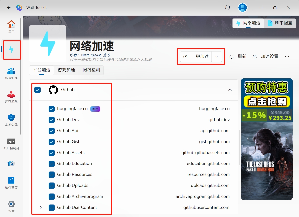 Watt Toolkit也可以开启 Github 加速。